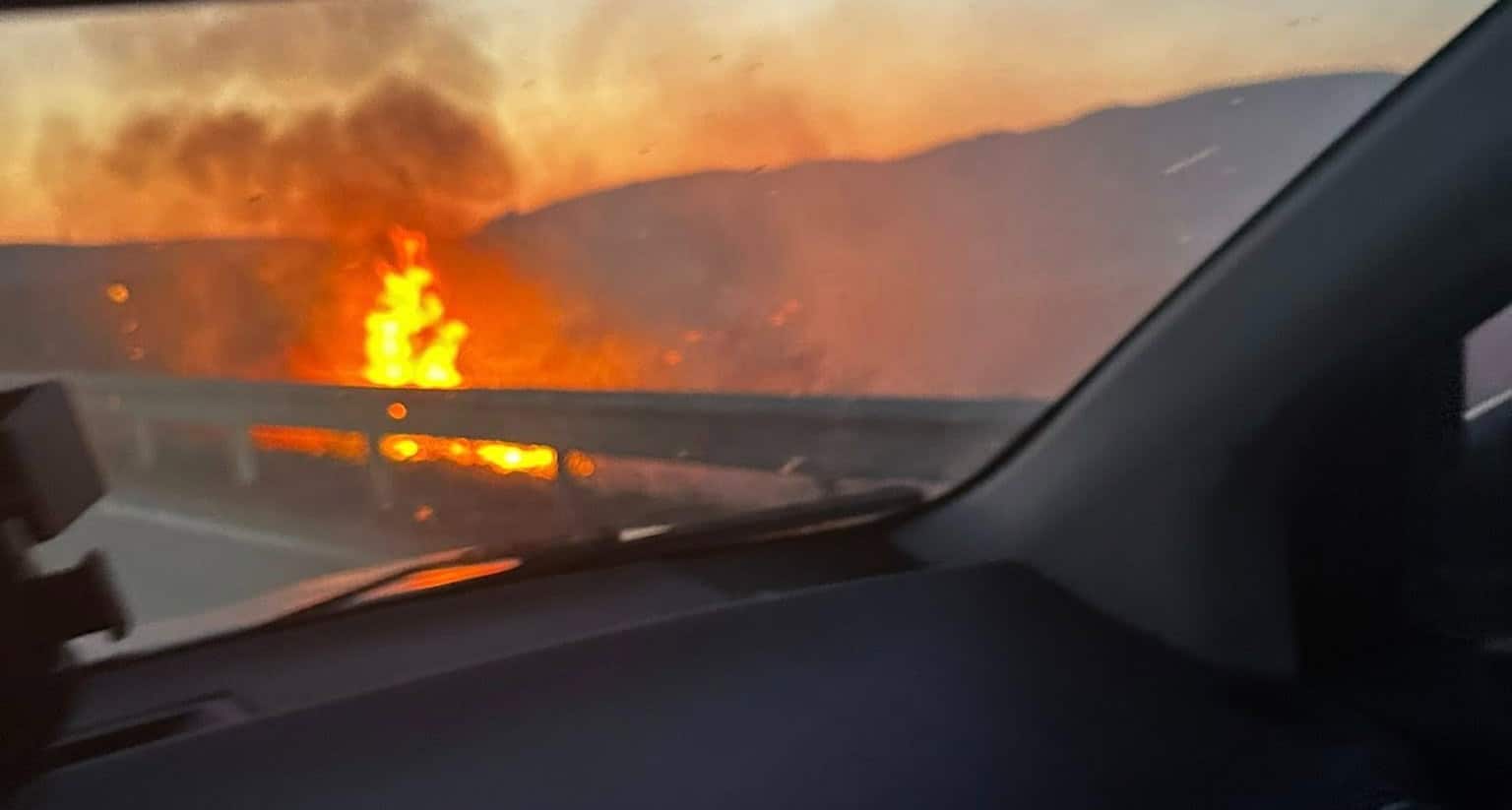 Focul s-a extins cu repeziciune pe o suprafață mare de teren. Participanții la trafic au surprins flăcările chiar lângă parapetul de protecție al autostrăzii.